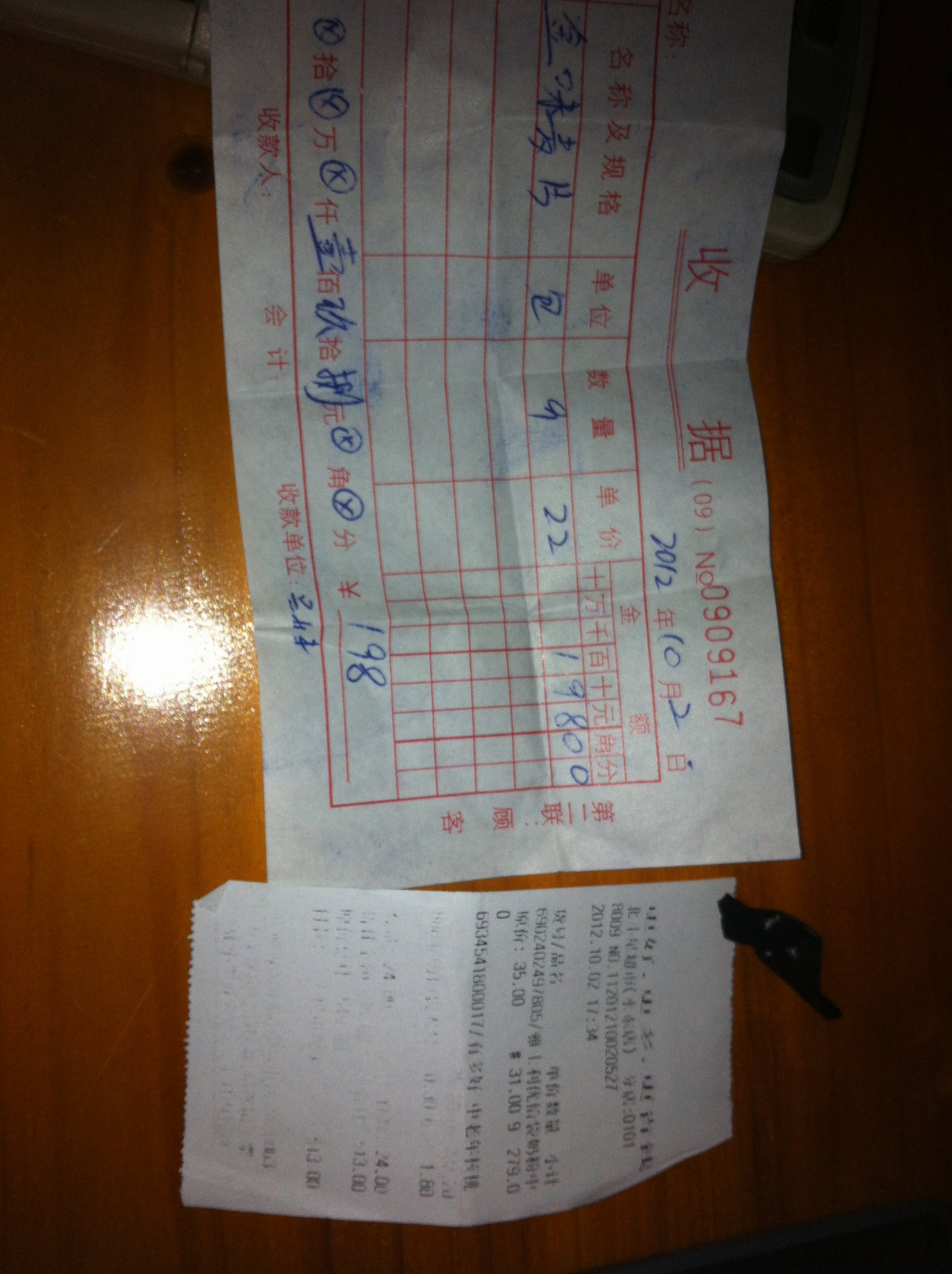 购买麦片22元×9=198