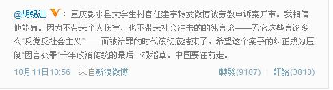 昨日,备受关注的重庆彭水县大学生“村官”任建宇转发负面微博被劳教申诉案在重庆市第三中级人民法院开庭审理。