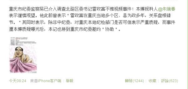 经重庆市纪委调查核实,近日互联网流传有关不雅视频中的男性为北碚区区委书记雷政富。11月23日,重庆市委研究决定,免去雷政富同志北碚区区委书记职务,并对其立案调