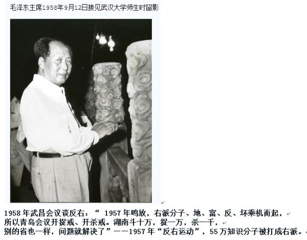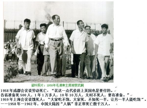 为了巩固新中国和执政地位,以毛主席为首的党中央一致决定,从政治思想和经济建设两个方面来解决问题:一方面是要正确处理人民内部矛盾,整党整风,巩固执政地位;另一方面是想通过一系列大的改革,把全国人民的积极性都发动起来,以推动社会主义经济建设快速发展。于是在1958年,毛主席提出社会主义建设总路线、“大跃进”和人民公社“三面红旗”,大家都是一致赞成和拥护的。在刚开始的一段时间,“三面红旗”也的确调动起广大人民群众极大热情,创造出不少令人兴奋的成果。大家都以为找到了高速度发展社会主义的正确道路,没想到结果犯了严重的“左”倾错误,高指标、强迫命令、瞎指挥、大炼钢铁、大办食堂和浮夸风、“共产风”等,造成很大损失。大家也有些不同看法和意见,但大都认为主要是下面执行的问题。1959年庐山会议本来是要纠“左”,却又错误地批判了彭老总,在全国掀起“反右倾”运动,促使“左”的错误更加严重,在很大程度上造成了三年经济困难,新中国遭受巨大灾难,这才感到问题的极端严重性。在总结三年困难原因、寻找克服困难的办法问题上,两位伟人之间才开始发生真正意义上的意见分歧。