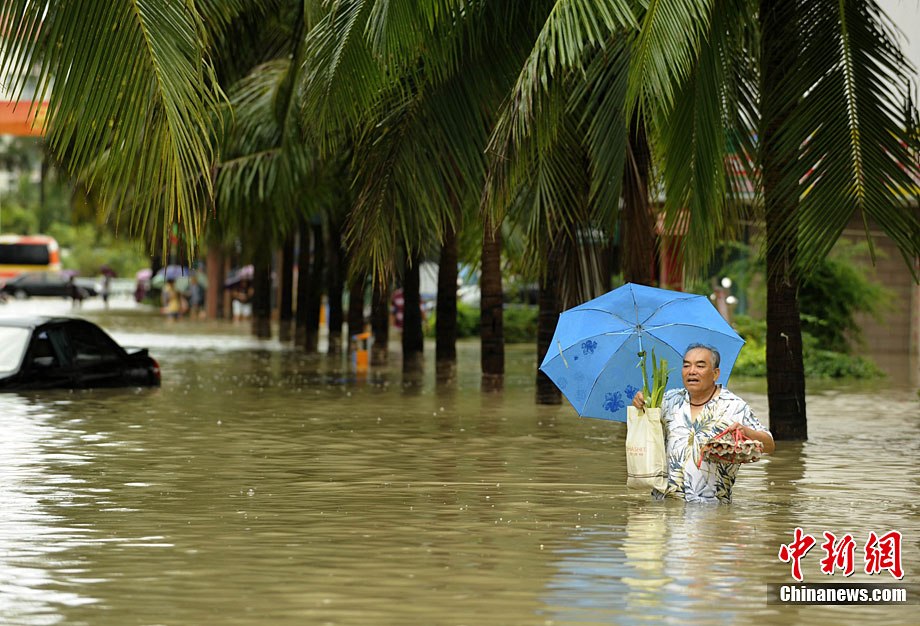 海南琼海遭遇暴雨 行人车辆水中“游”行 (1人在浏览)