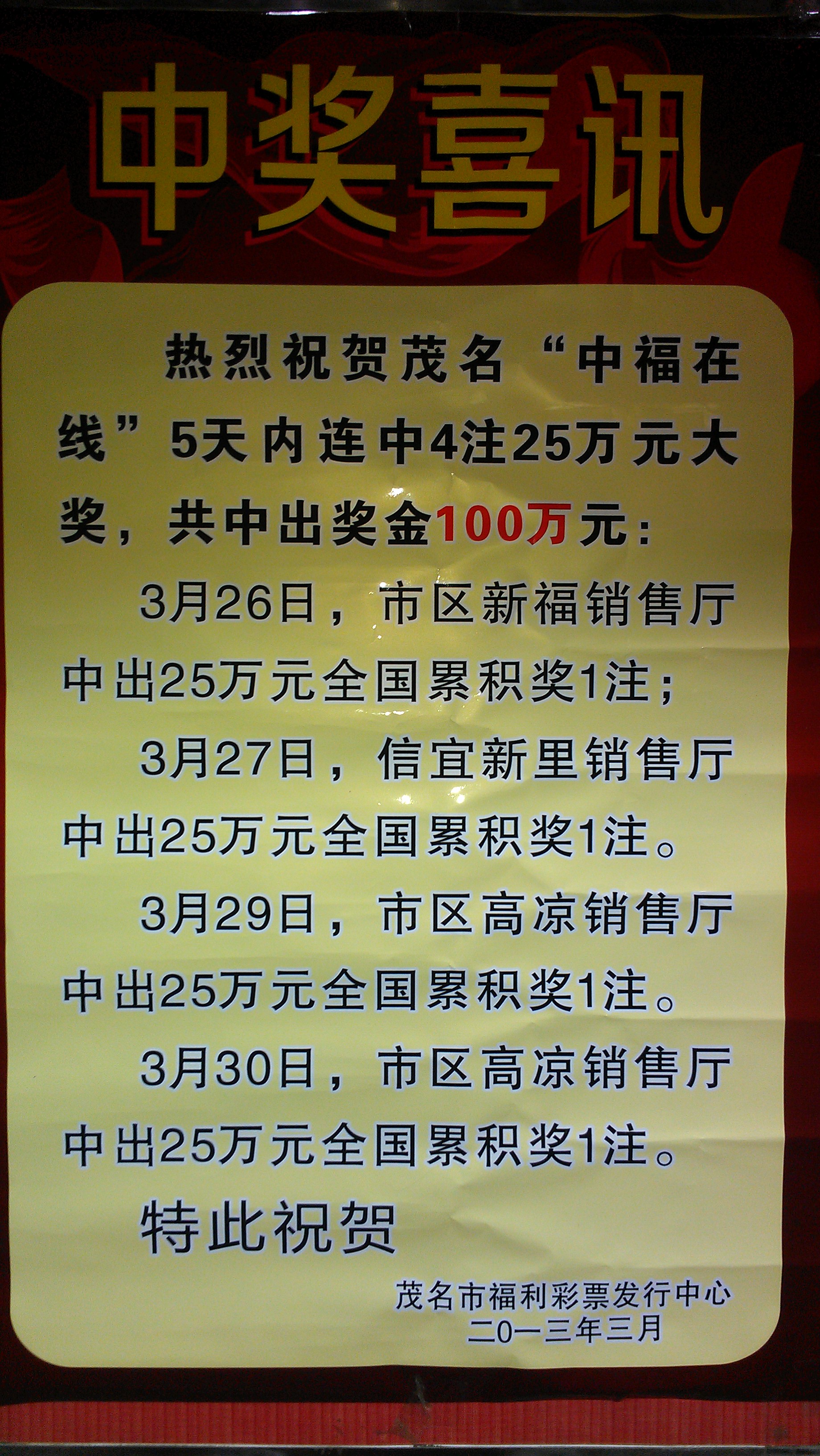 掌 掌门人 幼儿园 注册 2012-07-05 消息 24 反馈评分 0 点数 0 2013-04-04 #1 “中福在线”是中国福利彩票发行管理中心发行、全国联网、由位于北京的服务器统一控制,在线即投、即中、即兑的视频彩票 附件 0404_1.jpg 1.3 MB · 查看: 319
