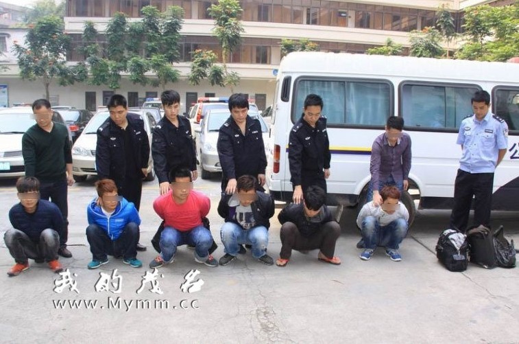 4月14日晚,专案组在省公安厅和广州警方的大力支持下,在广州市番禺区某住宅小区将犯罪嫌疑人詹某超、黎某坤、田某利、钟某崇、陈某明、邵某全抓获。同一时间,专案组在电白县水东镇某夜宵档抓获犯罪嫌疑人黎某强。