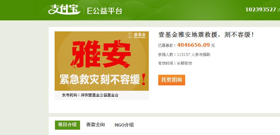 【雅安地震筹款】今日雅安地震,到下午四点止,中国红十字会筹得救灾款项三万多元,李连杰的壹基金筹得款项一千多万。