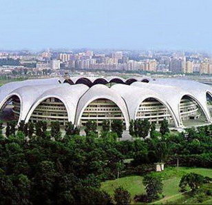 朝鲜“五一体育场”不输鸟巢,体育场位于平壤市风景秀丽的大同江绫罗岛上,竣工于1989年5月1日,总建筑面积达20.7多万平方米,可容纳15万名观众.容量震惊西媒 堪称全球最大。五一节都在这里举行文体活动或体育赛事。
