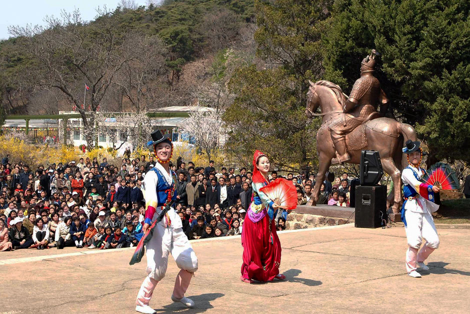 朝鲜“五一”节,在“自主、和平、友谊”的理念下,十分重视加强与世界各国劳动群众的友好关系,加强与各国文化艺术团体、艺术家的交流和合作,多次举办国际性艺术盛会,去年举办了平壤“五一”节音乐会,朝鲜、俄罗斯艺术家联合演出,军旅艺术家们以精湛的表演,向广大民众送上“五一”节的问候和祝福。今年又有中国、俄罗斯、古巴、法国、波兰等24个国家的800余名艺术家参加朝鲜“四月之春”艺术节演出,艺术家们用朝语演唱《金日成将军之歌》。中国总政歌舞团一行170余人也来朝鲜参加庆祝演出。尽管来自世界不同的地区和国度,彼此尚不熟悉,但大家的笑容与亲切是一致的,他们都真诚祝福朝鲜:早日打开强盛大国之门!