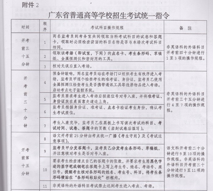 好,考前十五分钟,统一指令广播说:请监考员分发答题卡。我一下子傻了,答题卡袋还没开封,怎么发?于是急忙叫学生代表签名,开封答题卡袋,然后清点分数,已经浪费了不少时间,急忙发给考生。