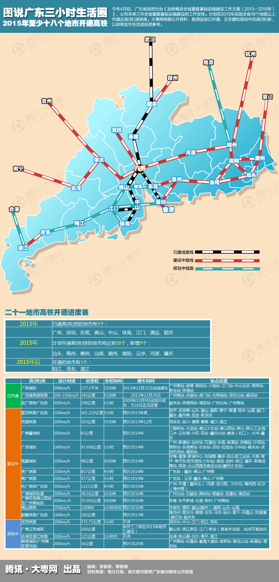 虽然两则公告都未透露具体的开工时间,但是早在今年1月的省第十二届人大第一次会议上,省发展改革委员会主任李春洪明确表示,深茂铁路今年就将动工,并争取先启动江门到茂名段。由于江门到深圳段要跨越珠三角核心区,因此线路已经选定,但是工程比较复杂,桥梁设计、地质勘探等将需要较长时间。