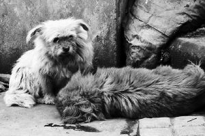 一只流浪狗被汽车撞死,同伴守在它的身旁不吃不喝,有人想*近,它就露出进攻的姿态,发出一阵狂哮,直到一个老者带着塑料口袋*近流浪狗,小白狗似乎知道老人的用意,让老人把小黄狗的尸体装进口袋,紧跟在老人身后,待老人在一块空地上掩埋了同伴后才依依不舍地离去……
