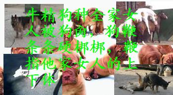 再说牛精狗种,他家女人那样东西不得了啊!双腿间长一个,脸上也长一个。插上面下面出水,插下面上面“啊、啊”直响,身体还特不安分,搞了搞了还调转屁股,四肢趴地。体位怎么像畜生?没办法,只能用绳子把她们绑在柱子上,谁知道这样她们叫得更欢,难道喜欢SM?这时前面跑过来100多条狗狗,群狗狂奔过来,连忙闪。狗可不是客气的东西,很快它们列为几队,不分先后朝牛精狗种家的几个女人呼啸而去,只见条条硬梆梆的狗鞭脱囊而出,直插她们家女人身体上有洞的地方,瞬间,她们家女人身上射满黏糊糊的液体。这么多狗鞭如何受得了?临死前他家女人高呼:牛精狗种,告诉后代,别贪狗鞭刺激,会死人的啊!教女教孙要刺激还是用人鞭。
