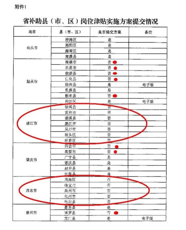 电白县财政局已经要求各镇于11月15日上交提薪表格。按照四档分配。