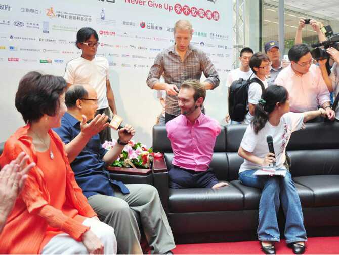 天生没有四肢的尼克、胡哲,曾在澳洲、美国、加拿大、中国(内地、香港、台湾)新加坡、南非、哥伦比亚、印度等25个国家和地区分享自己的经历。虽然他没有拥有健全的四肢,但他认为拥有一个健全的心灵、来自信仰的力量比什么都更重要。