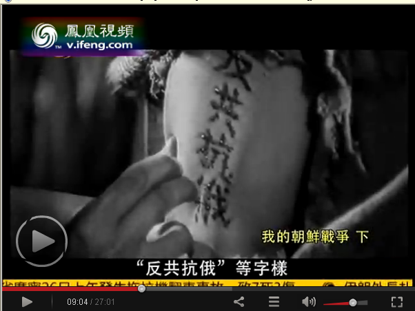 陈晓楠关于迫害志愿军战俘的解说结束,后面是迫害志愿军战俘的史料