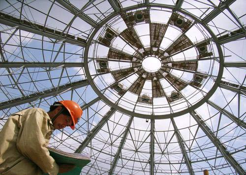 [attachmentid=25451] 2005年6月8日,铁路上海南站世界第一的超大透光屋顶今天顺利通过各有关部门质量验收合格。据悉,屋顶直径为278米的圆形钢结构,由54根钢柱支撑而起。全部完工后将具备隔热、遮挡烈日,排风排水的功能。根据规划,铁路上海南站将于年底建成,明年春运投入使用。