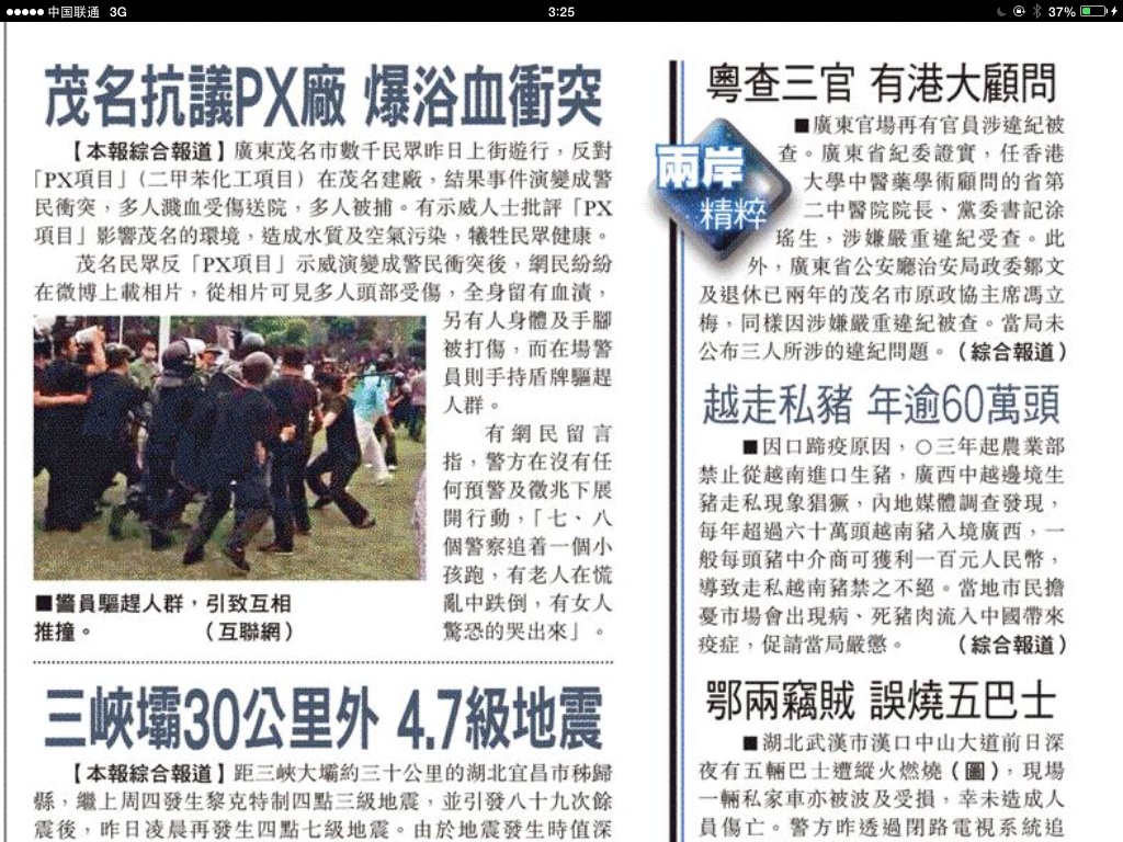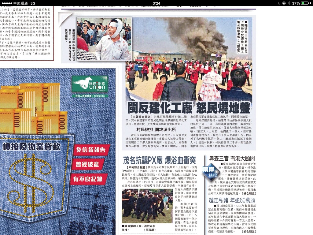 2013年5月14日,公示结束,新浪微博上疯传香港苹果日报对九江市政府门前反对PX项目的游行抗议活动进行了报道。