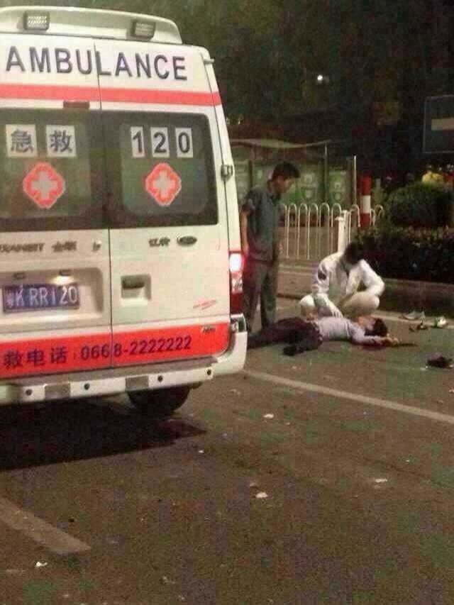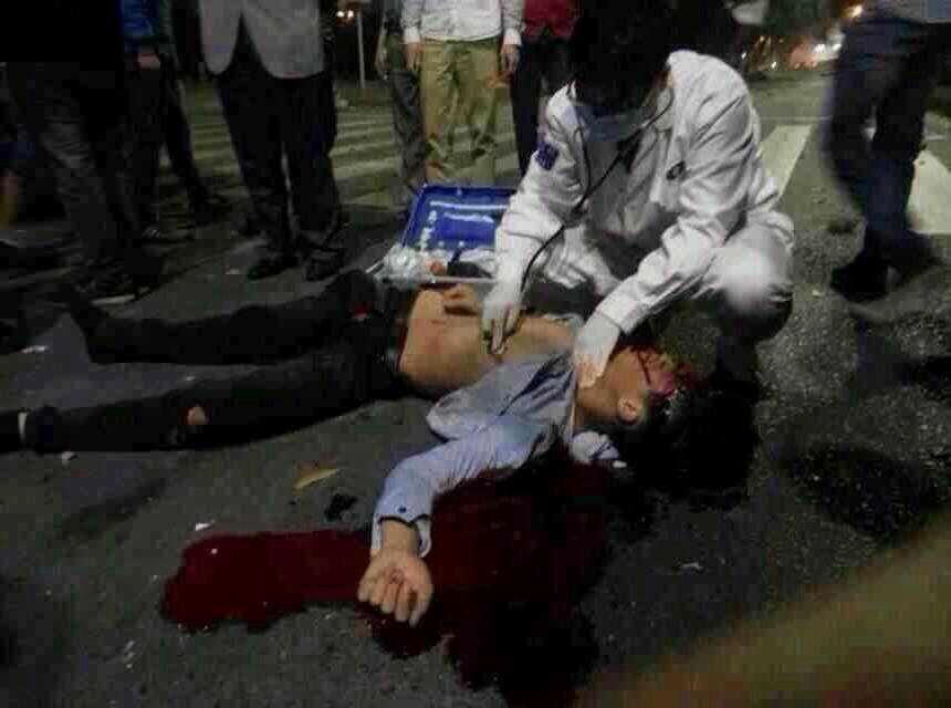 血腥镇压进一步升级!茂名政府试图杀一两个,杀鸡儆猴,让民众害怕不敢再上街?看现场图片估计是抢救不回来了