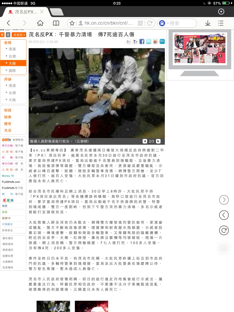 今天看了一天电视,查了一天网络,CCAV,凤凰台,省台,珠江,南方。凤凰网,腾讯网均没有客观真实的报道和评价。看来茂名市委市政府来头确实大,公关工作做得特好。还是背后?????????????????
