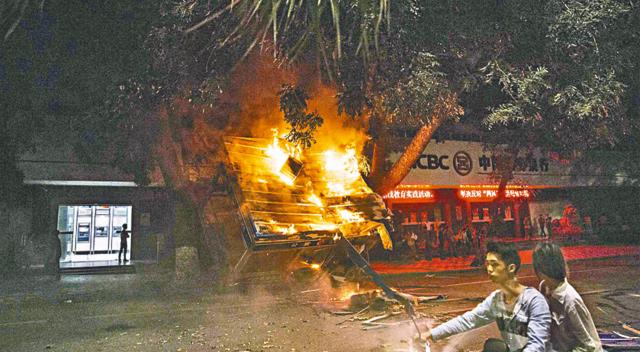 有民⑶巴砼c警Tn突的短片lo《O果》,警察用L棍追打民K_;民怒焚警亭,f凳人被捕。地o士透露,周日被警方打的市民,最少一人不治,另一人深度昏迷。
