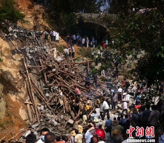 广东高州一条在建石拱桥发生崩塌 超过25人被埋