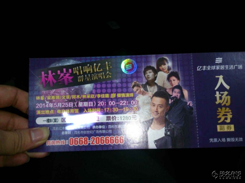 低价转让几张5月25号林o茂名电白演唱会门票