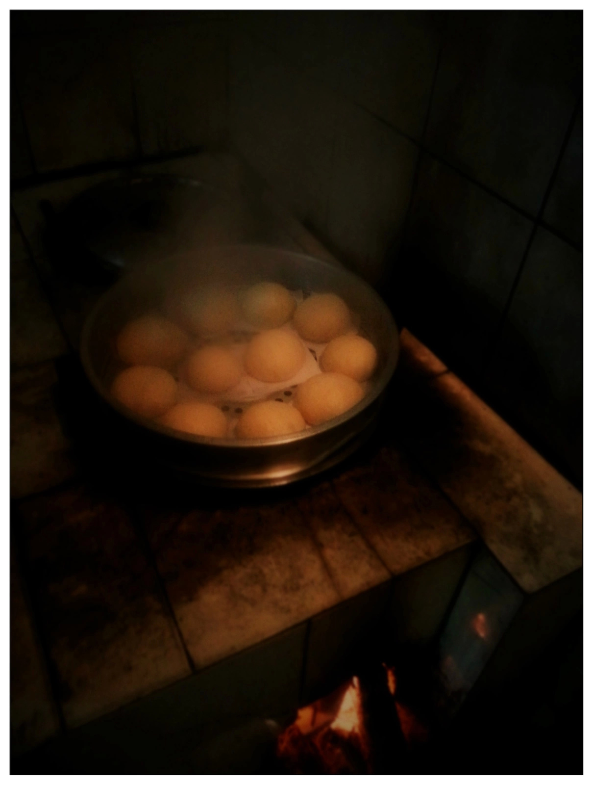 我的车开得飞快,因为知道我是不能错过和面团那个阶段,要知道以前这都是我专业干的事情。不过等我回到家的时候,面团还是给妈妈和了,只是她好像也生手了,面团和得稀里糊涂,我看了便感叹一声:幸好!我都笑她自己一人单干是不行的,后来托人买多些面粉回来,重新和过之后才算完成这道功夫。因为只有三个人在家,所以这次做的面包也是很简单,和了面之后就填充点现成的红豆沙进去。妈妈还是老样子,每次做面包的时候总会纳闷,为何自己总做不出像市场阿姨卖那些面包那样漂亮的外表,我也不太清楚,只不过我做的肯定比她捏的蒸出来好看。所以这次干脆她填馅,我来处理面包的外表。爸爸不管是做年糕还是面包,一般都很少参与的,但他一定会在旁边看或者行来行去,有时还偶尔当一下指挥。后来爸爸看到了门后放着的山药薯,他眼睛一亮便说,今晚糖水送面包吧,于是他便找到了他的活。