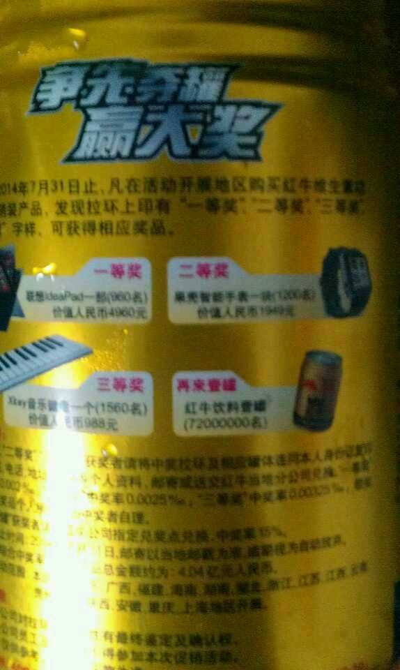 喝瓶红牛居然中了二等奖,奖品是价值人民币1949元的果壳智能手表一块