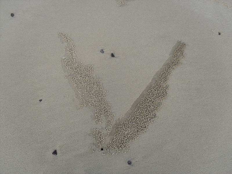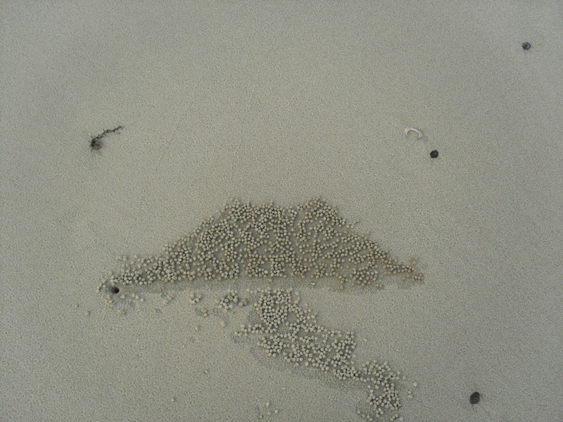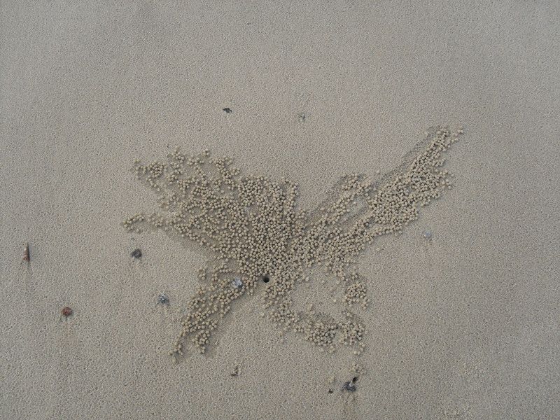 小海马也是沙滩上的艺术家,在潮水退下后,为了保护自己就在沙滩上挖洞,用小小钳子把沙子柔成小团,再推到洞外,不经意就造就了很多美丽的图案。