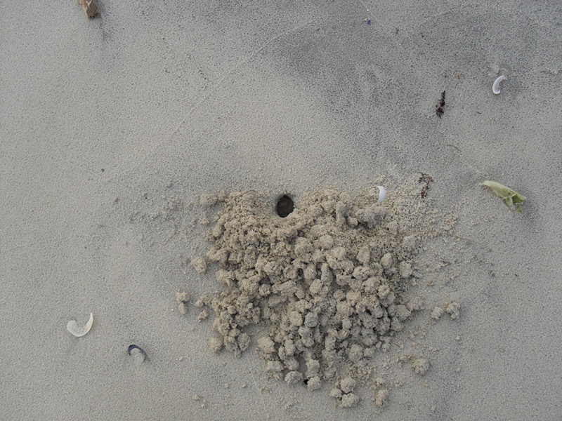 蟛蜞,小时候在水东海堤边到处都有。远远看去,在砂面上密密麻麻,人一走近,呼的一声全部钻进洞里,让你无从下手抓它。如今,在水东海堤看不到这小精灵了,也看不到砂子了,有的只是那臭泥。