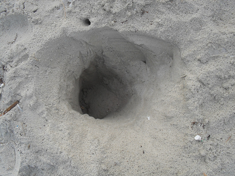 挖海马还真不容易,要边挖边留意洞的走向,否则挖几下子就不知道洞子哪去了。也要注意铲子不能铲到海马,否则现场就是沙子海马粥了。海马洞也很深,浅的都有半米,要想吃上美味的海马粥还是需要出点力气。挖出了海马也要迅速在洞中把它抓获,当它走出到洞外你要直接追上就不易了,只能用棍子扫晕它,这时死的死、残的残已经很狼狈了。