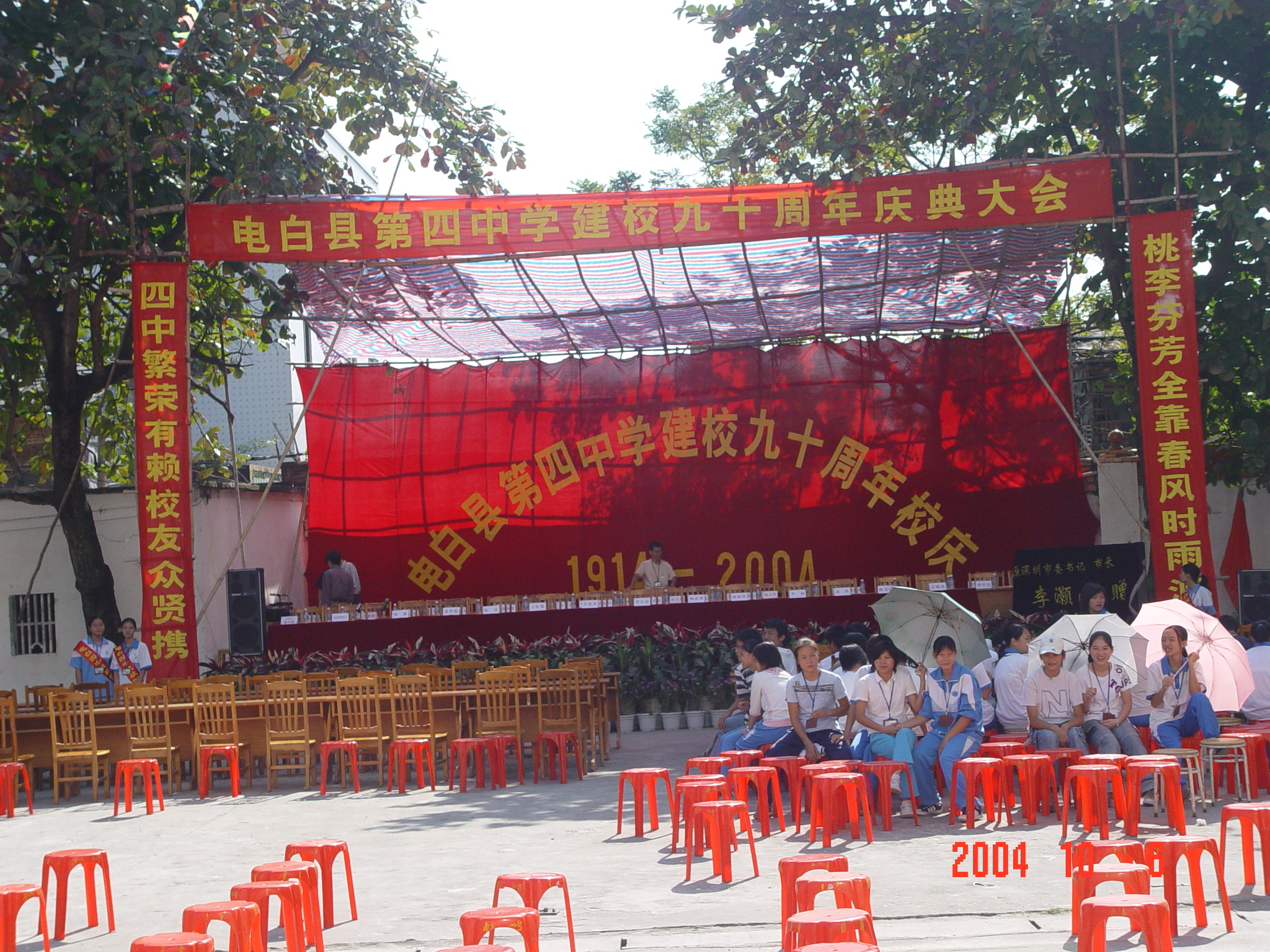 听说,电白一中这个名称是解放后才出现的,跟以前的国民党县立电白中学彼此没有传承关系。文革前,电白一中也搞过校庆,叫15周年校庆,是从解放后算起的。当年的电白一中15周年校庆是在电白水东大戏院搞的,每学期的开学典礼也在水东大戏院举行。不信问问文革前的一中学生。
