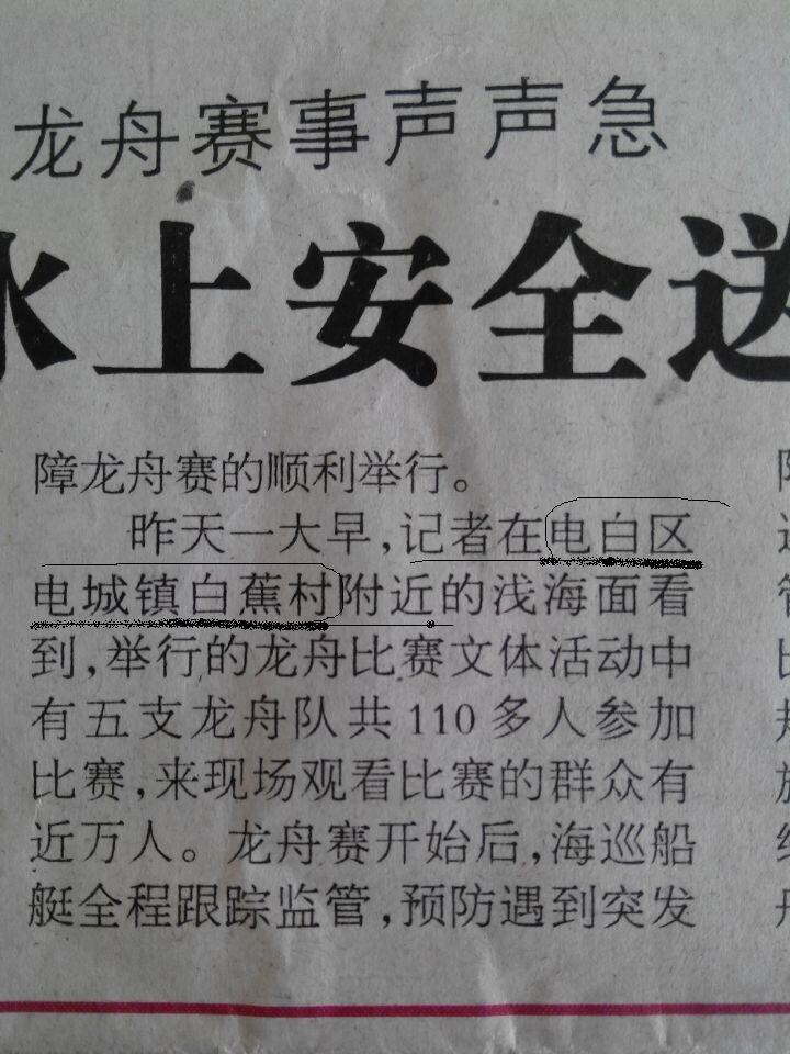 [attachmentid=327602][attachmentid=327602][attachmentid=327602]如今电城和博贺两镇已属滨海新区管理,并且有一套自己的行政班子,但前几天无意中在茂名“党报”的6月3日的B1版中看到这样的文字表述“记者在电白区电城镇白蕉村”,看似在领导的心目中俺还是属于电白的,但现在电城和博贺两镇许多许多都脱离电白了。想想――――――――唉,滨海新区的命有多长?还是别操这个心吧。