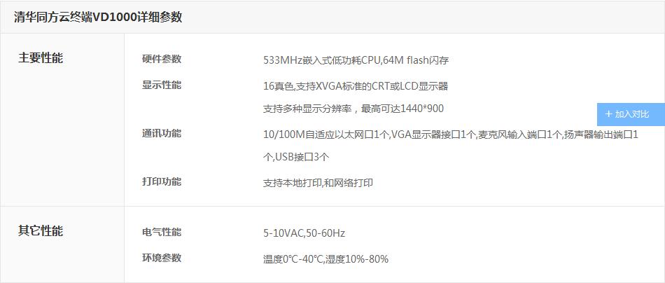 清华同方云终端VD1000详细参数