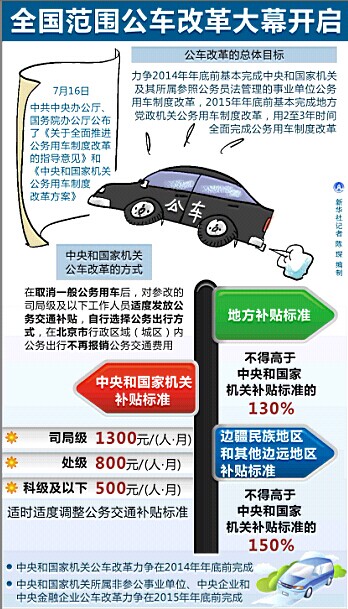 按照方案,中央和国家机关公车改革力争在2014年年底前完成,中央和国家机关所属非参公事业单位、中央企业和中央金融企业公车改革力争在2015年年底前完成。