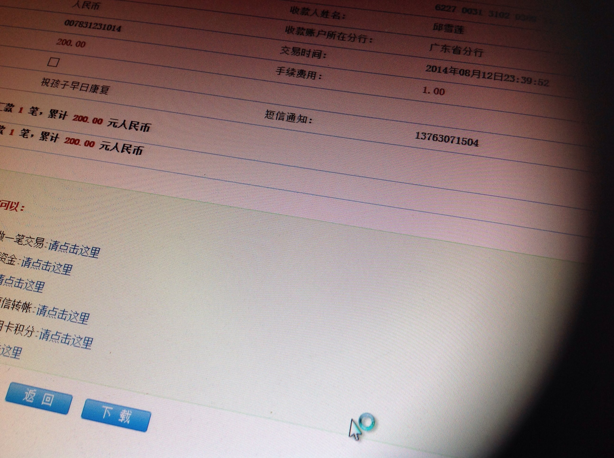 我的卡上已经没有钱,现在等人送钱。