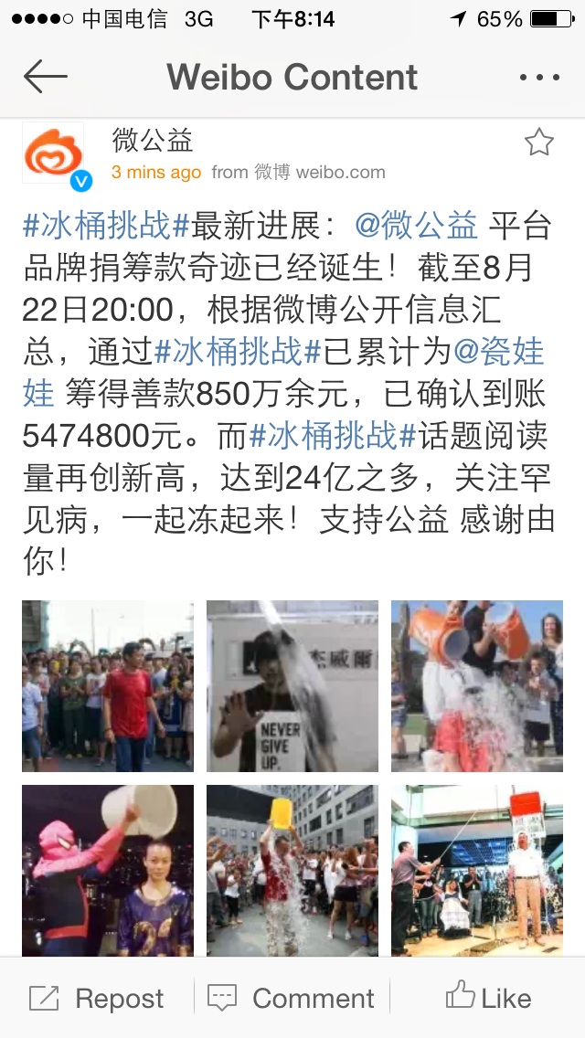 byronroy . 荣誉会员 注册 2005-08-17 消息 70,153 反馈评分 356 点数 191 2014-08-22 #220 [attachmentid=331644] 最近微博一次成功的募捐! 附件 image.jpg 234 KB · 查看: 518