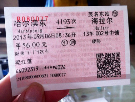 茂名东-哈尔滨 4025公里54小时44分,也许对别人来说,54小时是痛苦的,是漫长的,但对我来说,是54小时的休息,躺在卧铺上,睡睡觉,手机上上网,看看窗外风景,54小时也很快就过去了