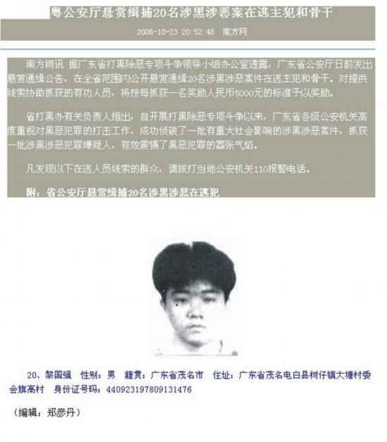 据知情人透漏:因去年持枪招摇过市,跟踪10里,蒙面残忍地在电白电城镇制造“410”枪击刀砍政协委员邵振才,邵振锋兄弟血案而东窗事发,轰动全国的茂名市有史以来最大黑社会“牛头强”黑社会组织20多名歹徒,即日将在茂名市中级人民法院开庭审理!