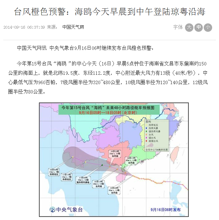 @LJ@ 小学一年级 注册 2011-02-12 消息 145 反馈评分 0 点数 1 2014-09-16 #1 台风橙色预警:海鸥今天早晨到中午登陆琼粤沿海[/size][/color]</span> [attachmentid=332480] [attachmentid=332479] 附件 QQ图片20140916094315.jpg 277.2 KB · 查看: 103 11.png 220.8 KB · 查看: 128