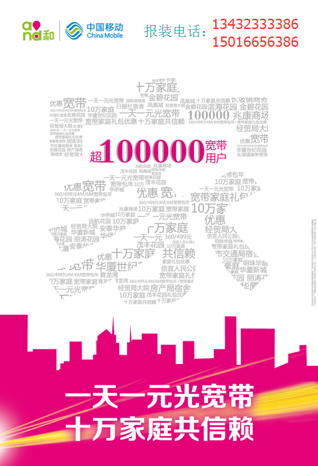 告示:月初和月尾这段时间单特别多,特别是现在优惠活动期间,为了更好服务大家。所有来电下单报装的客户,请事先准备好报装所需要的资料:身份证,本地移动号码(用来赠送话费),详细报装地址(这个非常重要,方便我们准确查询是否覆盖可安装)