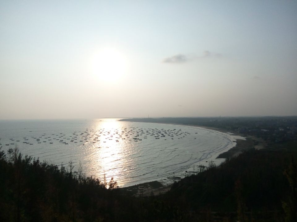 11月1日,闰九重阳,碧空如洗,海水蔚蓝,晏镜岭山上山下游人较多,有在洋人与孩子在滑翔。