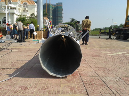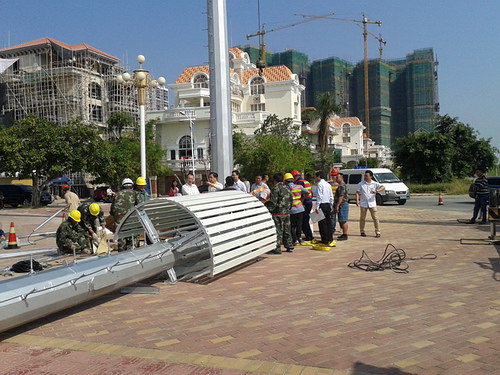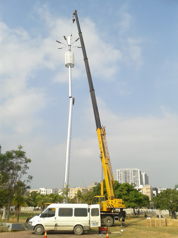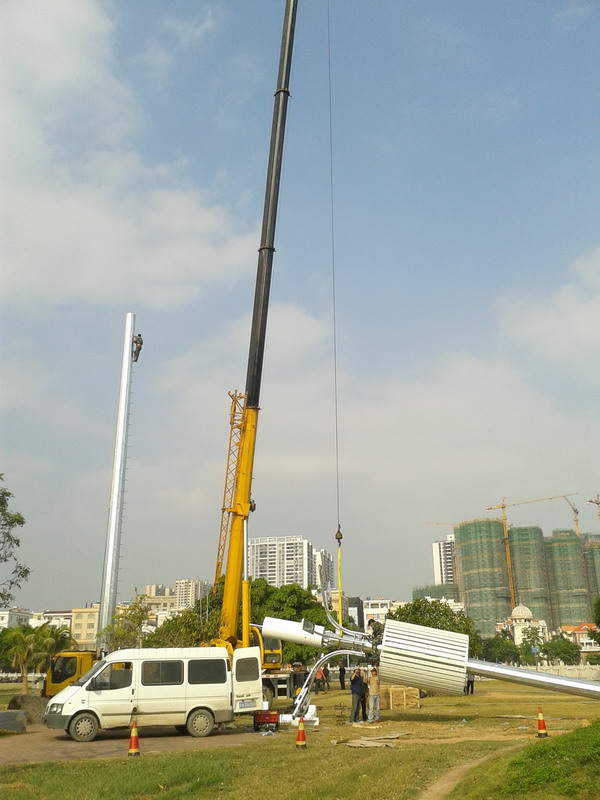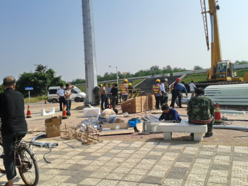 貌似还在调试整修,拟似五条钢柱已安装完毕:1革命烈士碑附近,2上排小学对面广场,3防护堤边,4洗太夫人像与舞池中间,5电白中学后面运动场附近,瓦也期待现场效果