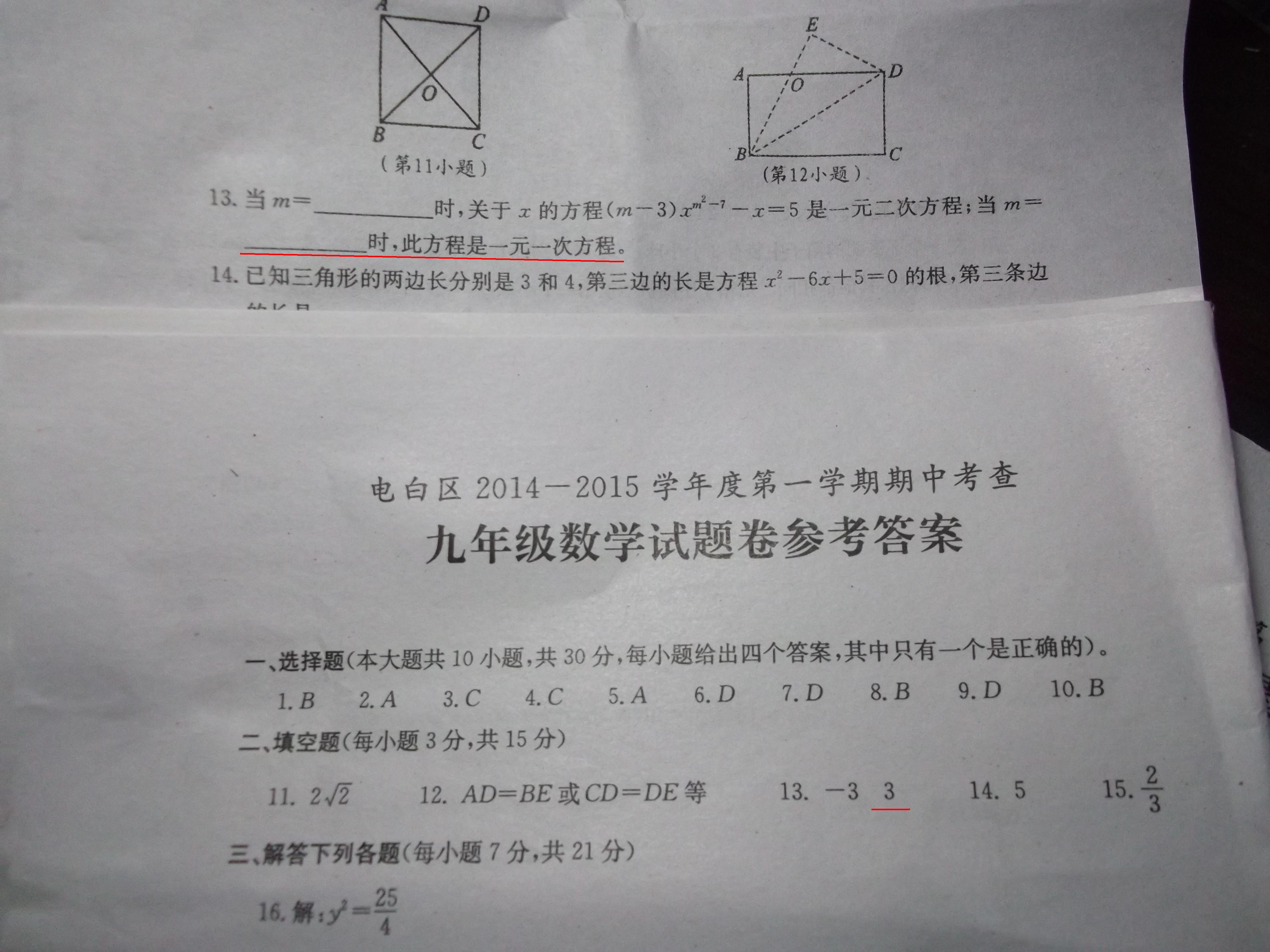 专家做的题:大家看看初三期中数学考试的试题答案,其中第13小题填空题,答案m有5个值:3,根号7,负根号7,2又根号2,负2又根号2;这么不严谨的思维,欺骗了多少学生?[attachmentid=334915]