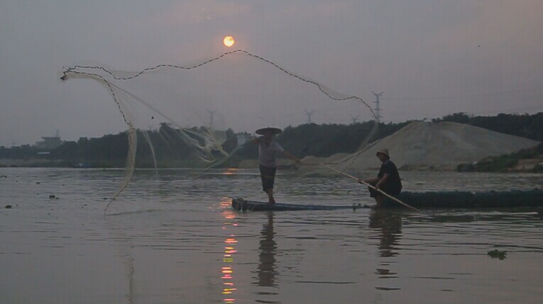 昨天的拍摄活动得到了霞洞广播电视站、当地诗人、渔民等群众的大力支持,拍摄工作有条不紊的进行着。从上午11点开始,摄制组顺利拍摄了“码头离歌”、“学生时代”、“渔歌唱晚”等经典的富有意境的镜头。霞洞当地著名的山歌演唱者王金贵、冯玉梅还现场表演了山歌对唱,只见夕阳余晖下,波光粼粼,山歌唱晚。在沙朗江美丽的暮色掩映下,如诗如画。
