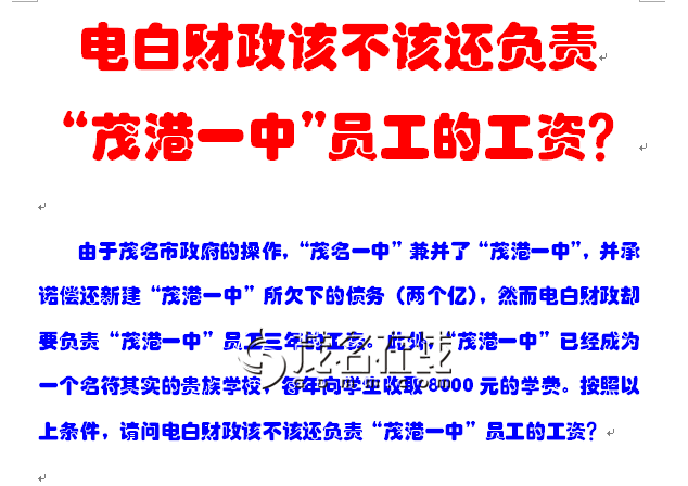 电白财政该不该还负责 “茂港一中”员工的工资?