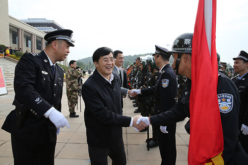 副市长、市公安局局长陈克在动员讲话中要求,全市各级公安机关和武警部队要振奋精神、敢于担当,严打整治不懈怠,强力推进“3+2”专项行动(即全省统一部署的打击整治涉毒、涉黑、涉盗抢违法犯罪专项行动和我市确定的打击整治诈骗和集资诈骗违法犯罪专项行动);要勇于创新、科学管理,治安防控不放松,进一步严密社会面防控,加强交通、消防及公共安全管理,压减发案,防范重特大安全事故的发生;要严格要求、树立形象,做到忠诚可靠,确保队伍风清气正。