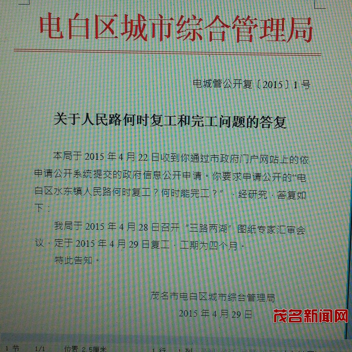 1、4月18日电白区成立一周年也过去了,“五一”节也来了,至今还不能完工,是不是应该对城建局领导进行问责?