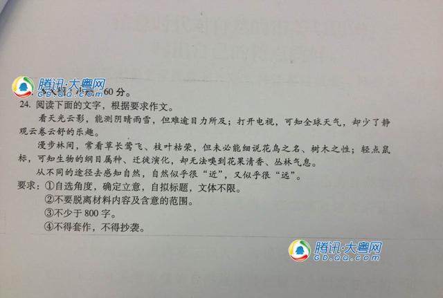 这期高考作文,实在过于简单了。。可以直接写网络与现实的差距,可以直接写亲人与思念的差距,当然,也可以照般材料所给,直接写大自然。