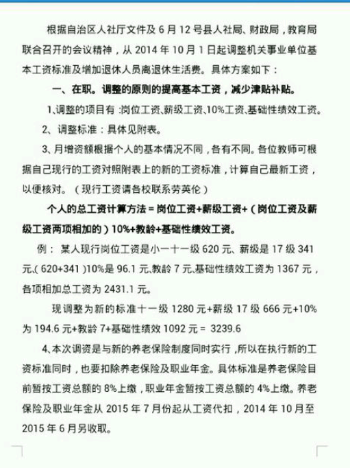 这是某县工资调整实施细则,电白的呢