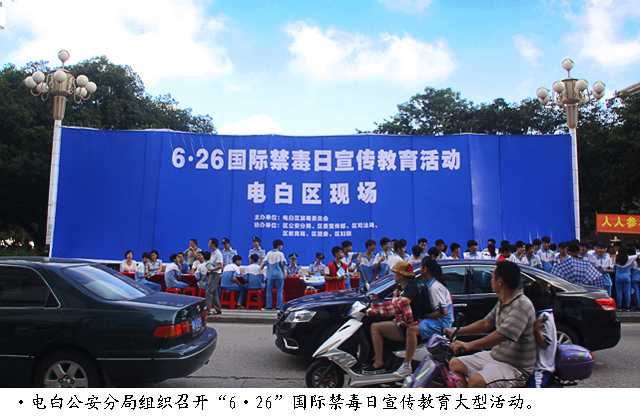 6月26日,电白区公安分局联合区委宣传部、区司法局、区教育局、区团委、区妇联等单位举办了2015年6•26国际禁毒日宣传教育活动。今年宣传教育活动的主题为“珍爱生命,远离毒品”。