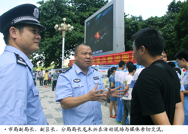 宣传教育活动分为上午、下午两场,分别在电白区水东镇西湖边和东湖公园前进行。活动内容有播放禁毒宣传片、摆放社会治安重点整治图片展、现场咨询、现场涂鸦和发放禁毒宣传小画册。